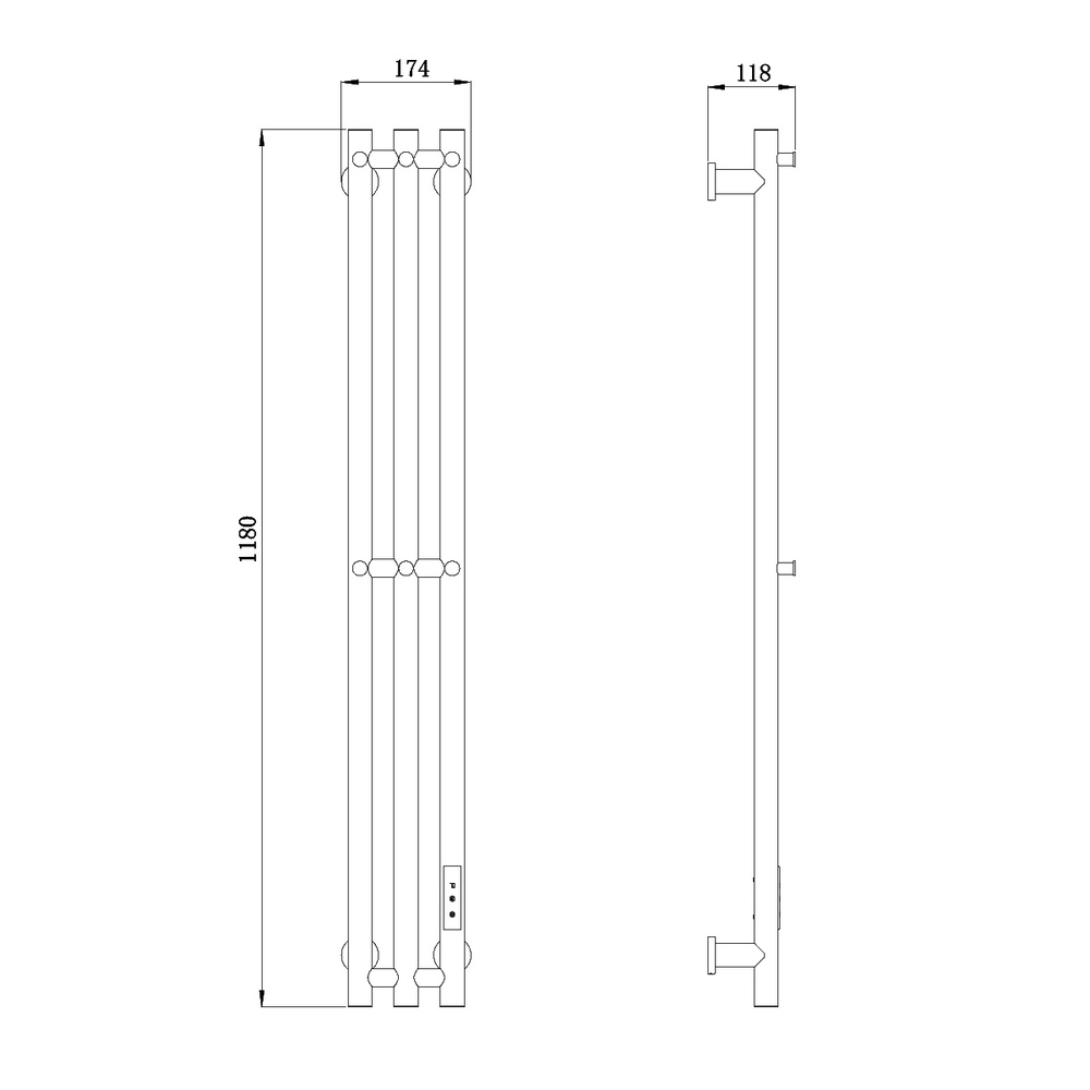 Полотенцесушитель электрический RAGLO R350.16.33 настенный сенсорный узкий с терморегулятором, матовая медь. Гарантийный срок: 5 лет. Количество секций: 3. Материал: нержавеющая сталь SUS 313. Греющий элемент: углеродное волокно (карбоновый). Форма: I-образная.