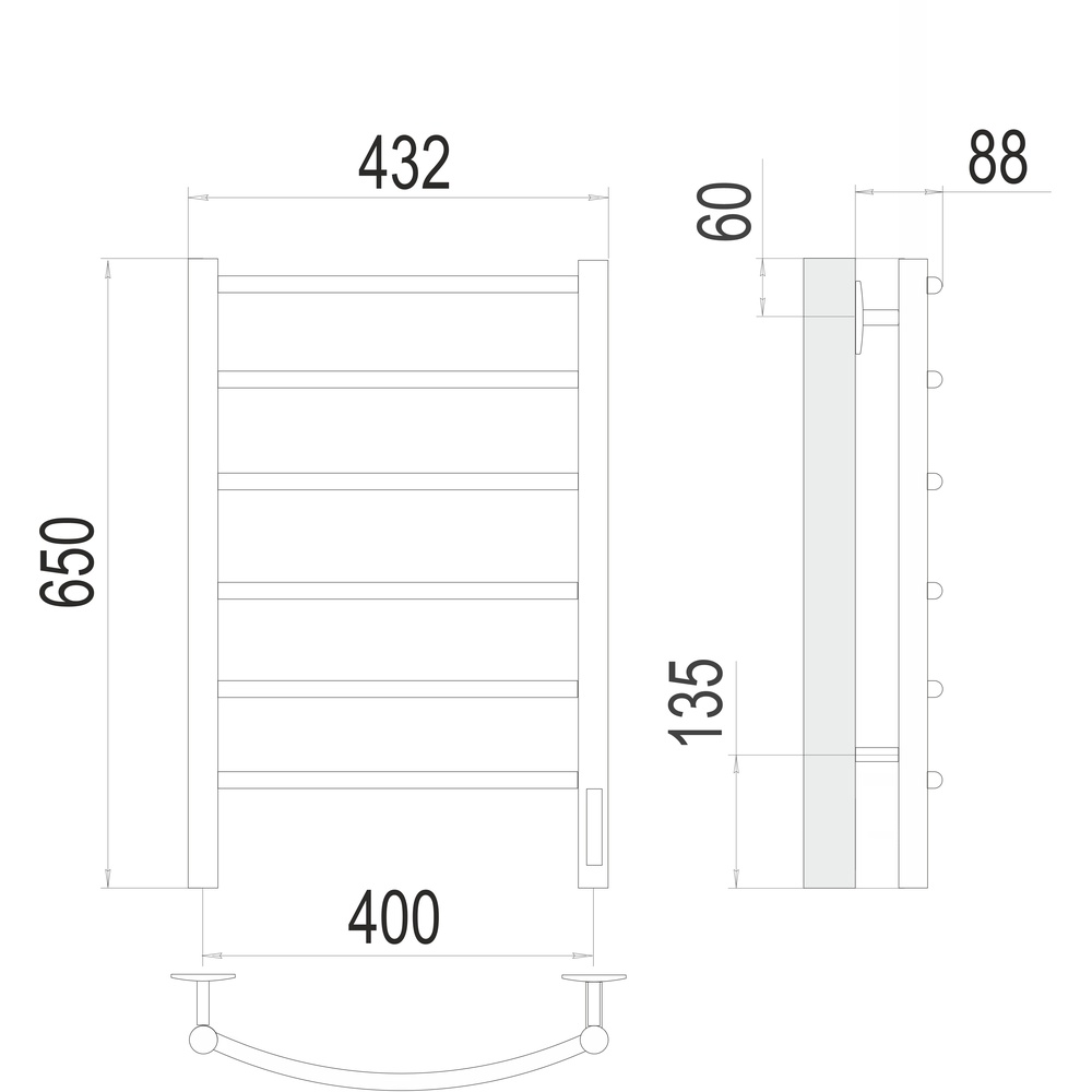 Полотенцесушитель электрический Terminus Классик П6 40х65 quick touch, сатин