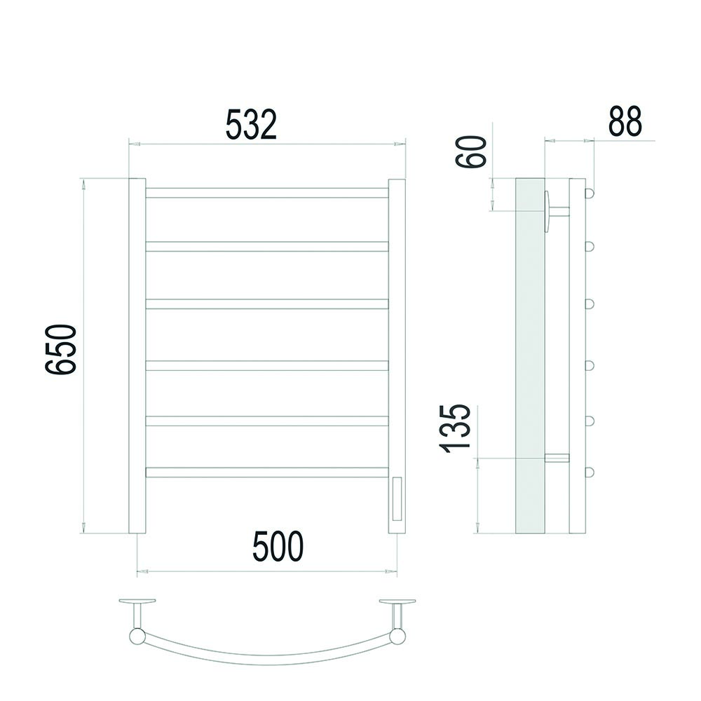 Полотенцесушитель, телескопическое крепление, модуль скрытого подключения, съемный кабель-вилка