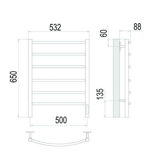 Полотенцесушитель электрический Terminus Классик П6 50х65 quick touch, сатин