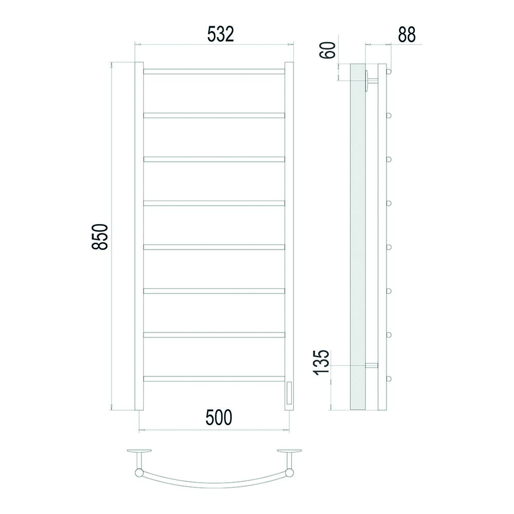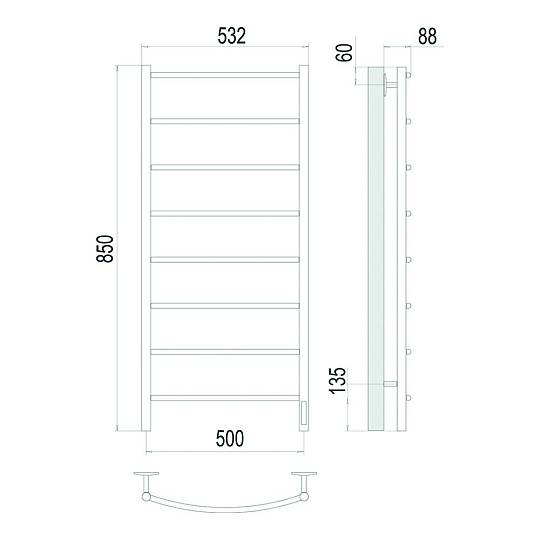 Полотенцесушитель электрический Terminus Классик П8 50х85quick touch, сатин