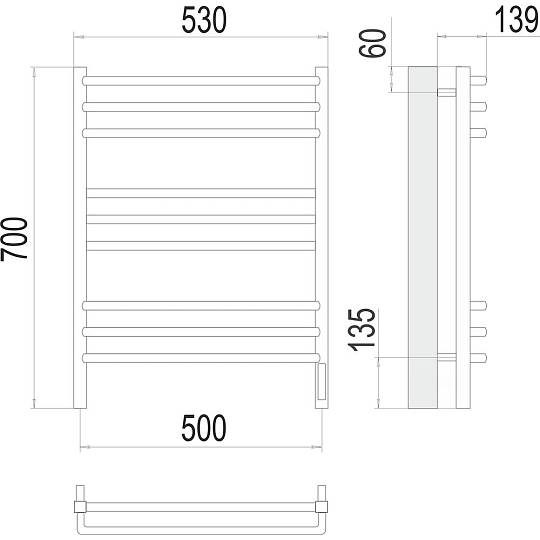 Полотенцесушитель электрический арт.: 4670078531490. Бренд: Terminus. Тип подключения: справа. Материал: нержавеющая сталь. Теплоноситель: греющий кабель. Форма: лесенка. 3 режима работы таймера.