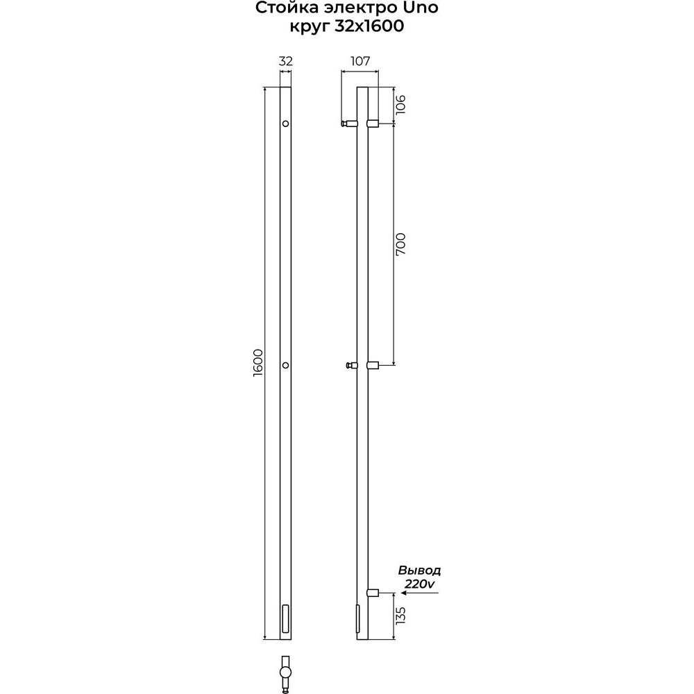 Полотенцесушитель электрический Terminus Стойка UNO круг 160, черный купить за 16 150 руб.