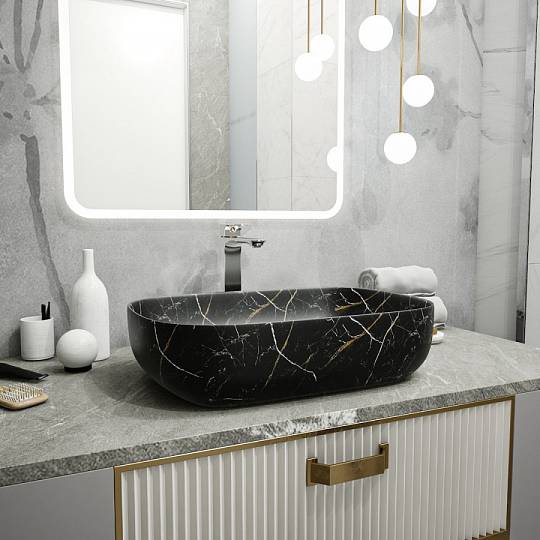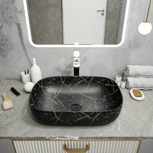 Раковина чаша Maretti FL13NS66-560MR, черный мрамор. Материал: санфарфор. Размер: 61x40x14,5. Форма: прямоугольная.