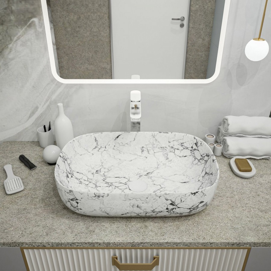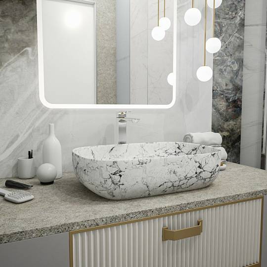 Раковина чаша Maretti FL13NS66-740MR, белый мрамор. Материал: санфарфор. Размер: 61x40x14,5. Форма: прямоугольная.