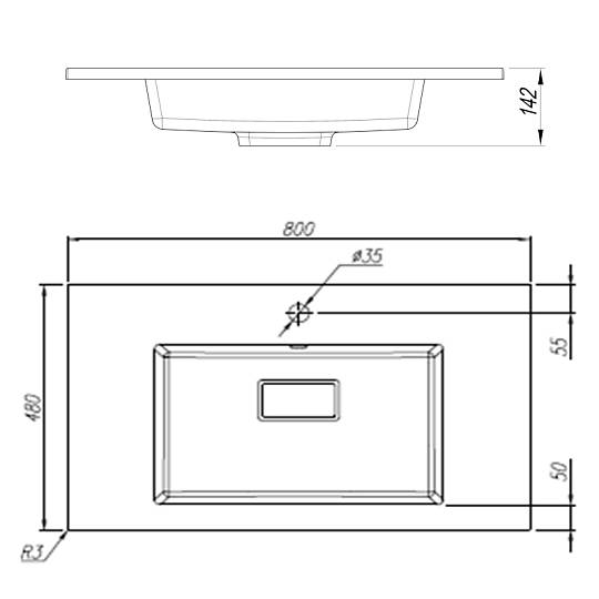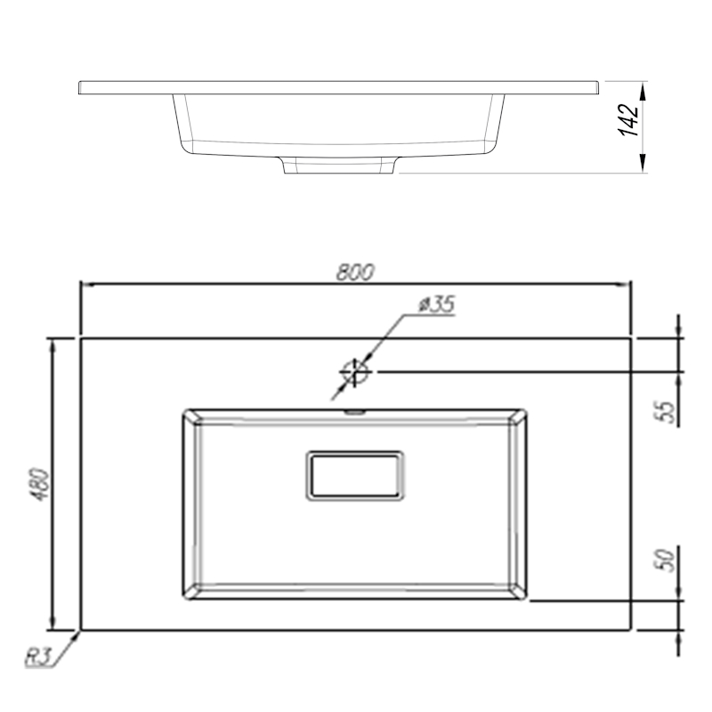 Раковина ПЕРСОНА 800. Размер: 800х480х142 мм.