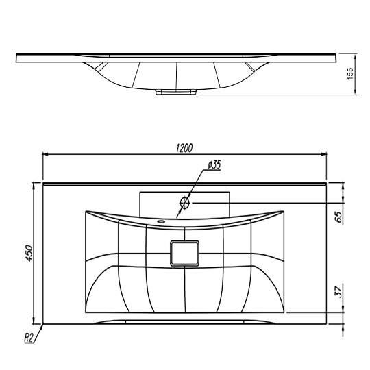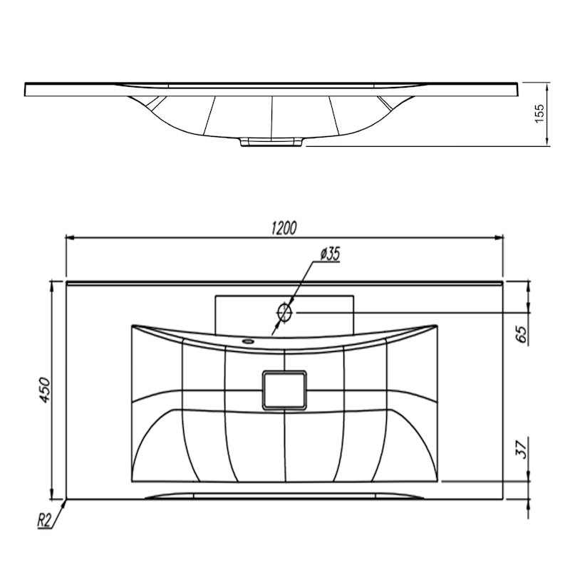 Раковина ПРИМА 1200. Размер: 1200х450х155 мм.