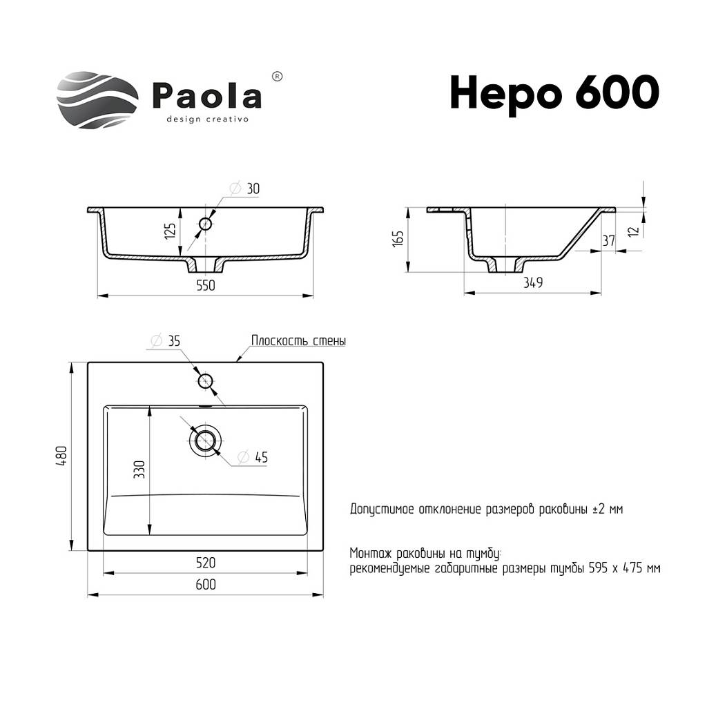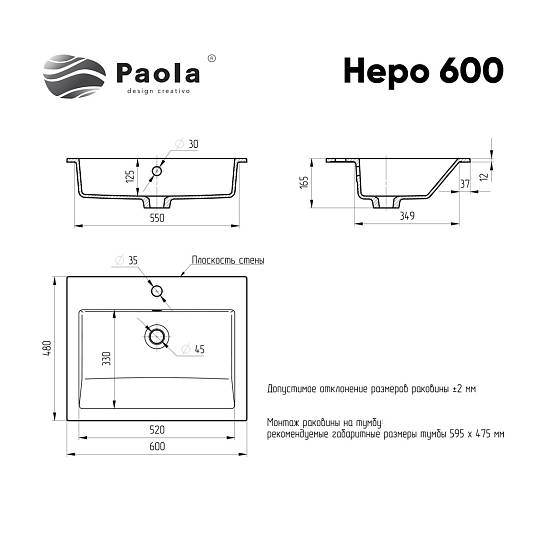 Врезная раковина Paola Nero 600 GS White  изготовлена из прочного износостойкого литьевого мрамора со специальным химически стойким защитным покрытием и имеет современный, стильный и эргономичный дизайн. Изделие обладает глянцевым блеском, исполнение поверхности Glossy Shine - очень приятное на ощупь, прочное
