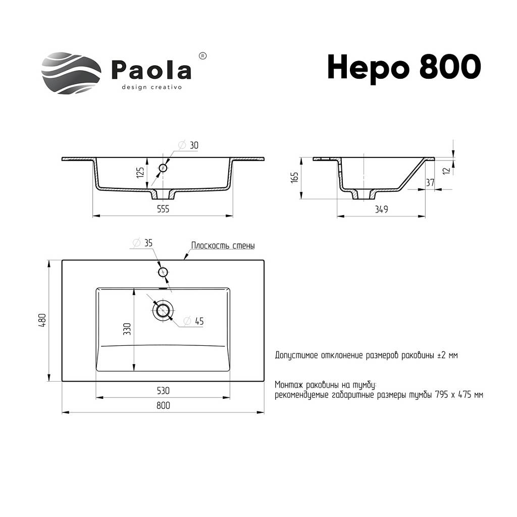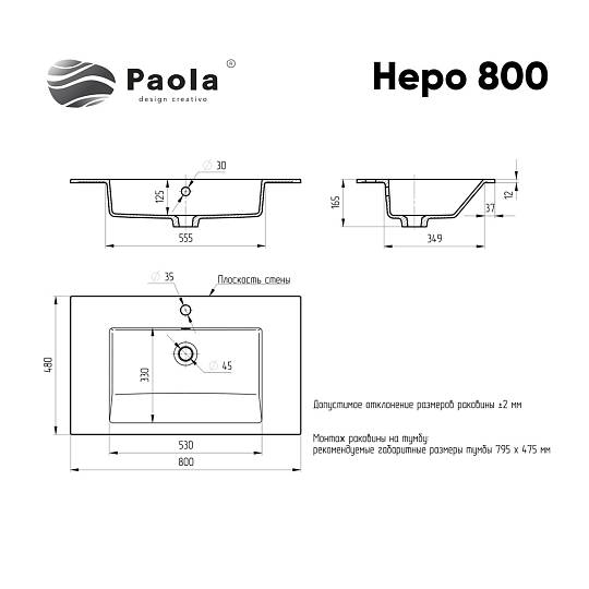 Врезная раковина Paola Nero 800 GS White  изготовлена из прочного износостойкого литьевого мрамора со специальным химически стойким защитным покрытием и имеет современный, стильный и эргономичный дизайн. Изделие обладает глянцевым блеском, исполнение поверхности Glossy Shine - очень приятное на ощупь, прочное