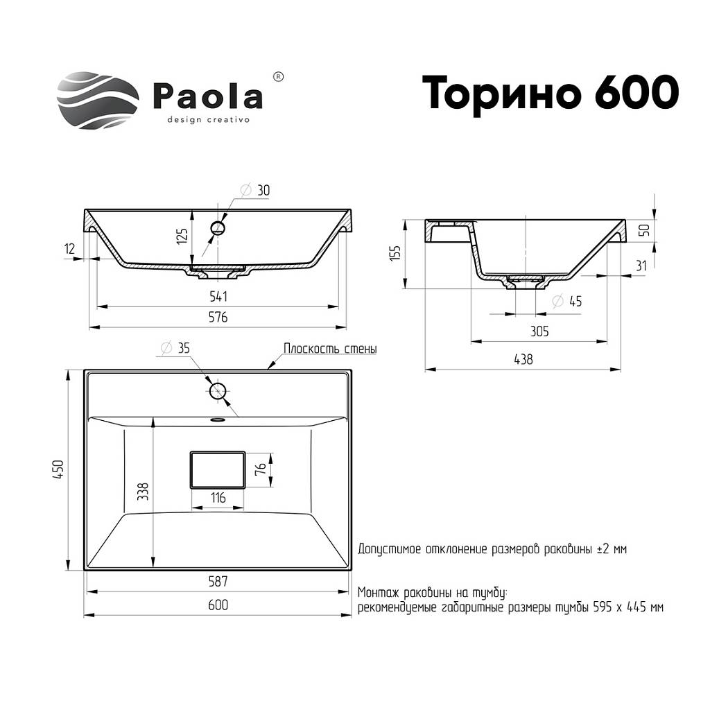 Врезная раковина Paola Torino 600  с отверстием под смеситель и декоративным элементом на сливе имеет современный, стильный и эргономичный дизайн. Возможна установка раковины на тумбу  (вровень)  или на столешницу. Раковина выполнена из прочного износостойкого литьевого мрамора, сверху покрыта специальным защитным покрытием гелькоутом. Исполнение поверхности Glossy Shine - изделие обладает глянцевым блеском, очень приятное на ощупь и даже при минимальном уходе сохраняет безупречный цвет и внешний вид на долгие годы. В комплекте - слив-перелив, а также декоративный элемент, под которой спрятан слив,  технический паспорт и гарантийный талон. Заводская гарантия составляет 5 лет, срок службы более 10 лет.