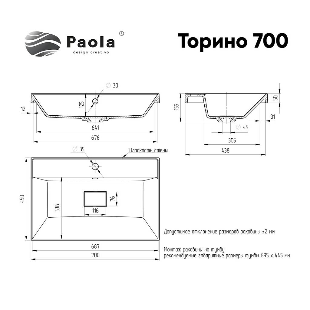 Раковина Paola Torino 700, белый купить по цене 9 128 руб.