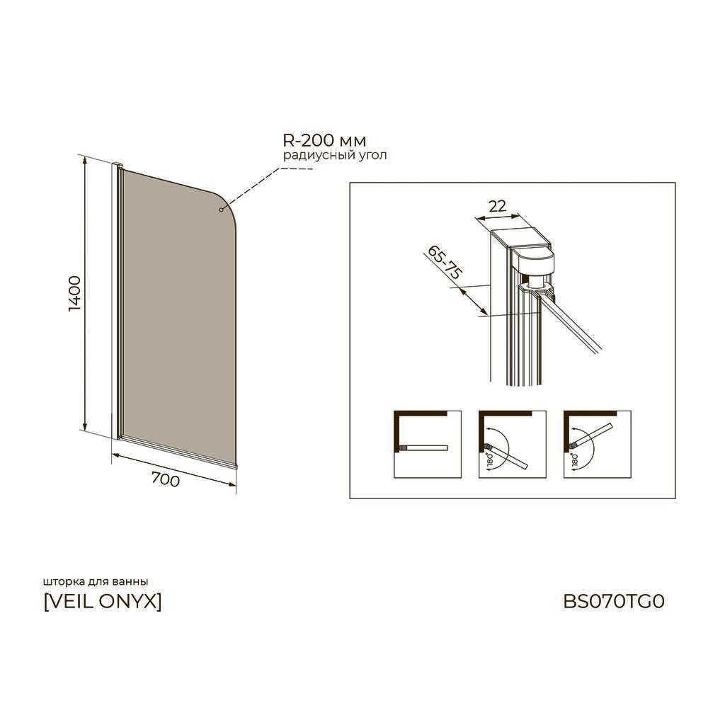 Шторка на ванну распашная Knotlor BS070TG0RB 140х70, бронза купить по цене 18 800 руб.