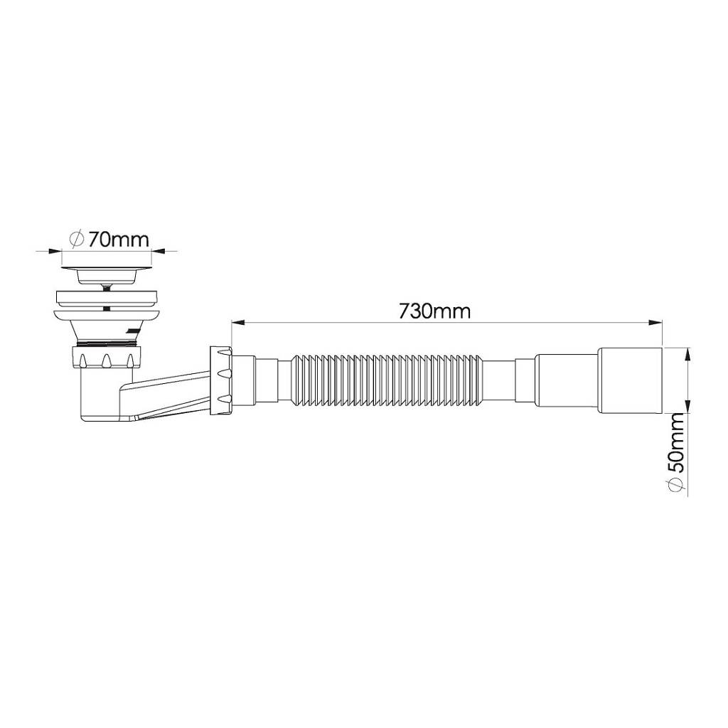Сифон для душевого поддона низкий, h=90 мм, выпуск 70мм, выход гибкая труба G 1'1/2" - Ø40/50мм