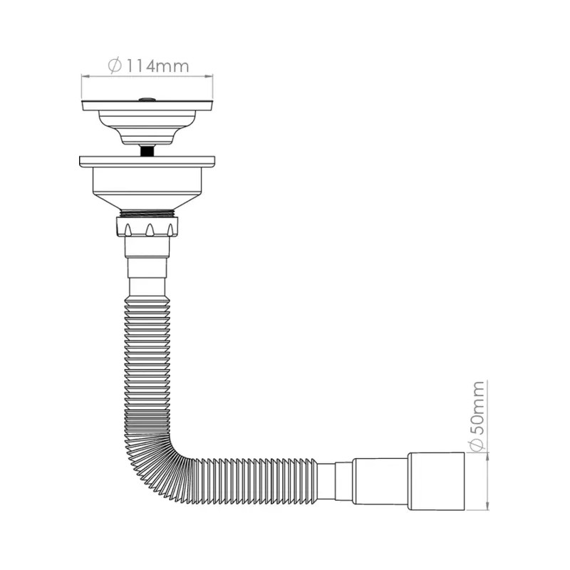 Евросифон гофрированный, l=750мм, выпуск 114мм (3 ½") для нержавеющей мойки, с прямоуголным переливом, латунный винт 25мм, выход гибкая труба G 1'1/2" - Ø40/50мм