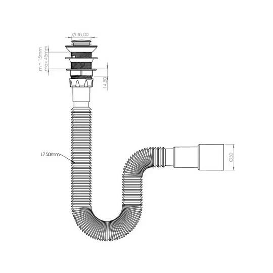Сифон G 1'1/2" - Ø40/50мм гофрированный, с донным клапаном click-clack, l=750 мм