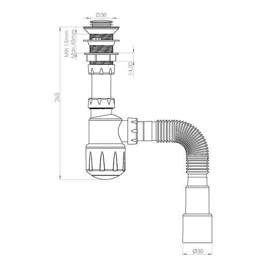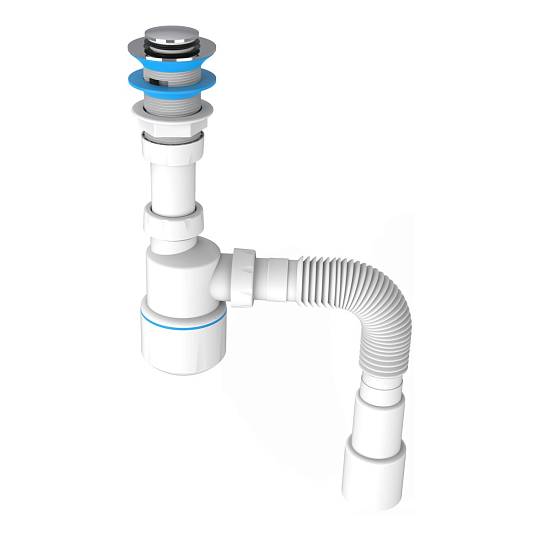 Сифон для умывальника с донным клапаном click-clack, гайка 32мм, выход гибкая труба G 1'1/4" - Ø40/50мм