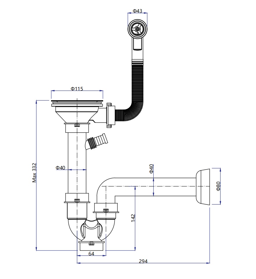 Сифон одинарный 3 1/2" с круг пер черный
