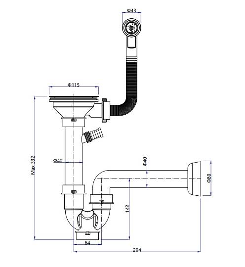 Сифон одинарный 3 1/2" с круг пер черный купить за 4 000 руб.