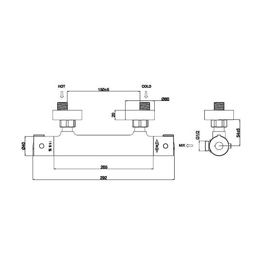 Смеситель для душа с термостатом Voda T3080, хром