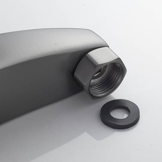 Лейка крепится на стене с помощью удобного держателя из комплекта — он не только обеспечивает надёжную фиксацию, но и даёт возможность настроить оптимальный угол наклона под ваши предпочтения. Душевой шланг длиной 150 см в двойной металлической оплётке сочетает прочность, гибкость и эстетичный внешний вид, не перекручиваясь и не перегибаясь в процессе использования.