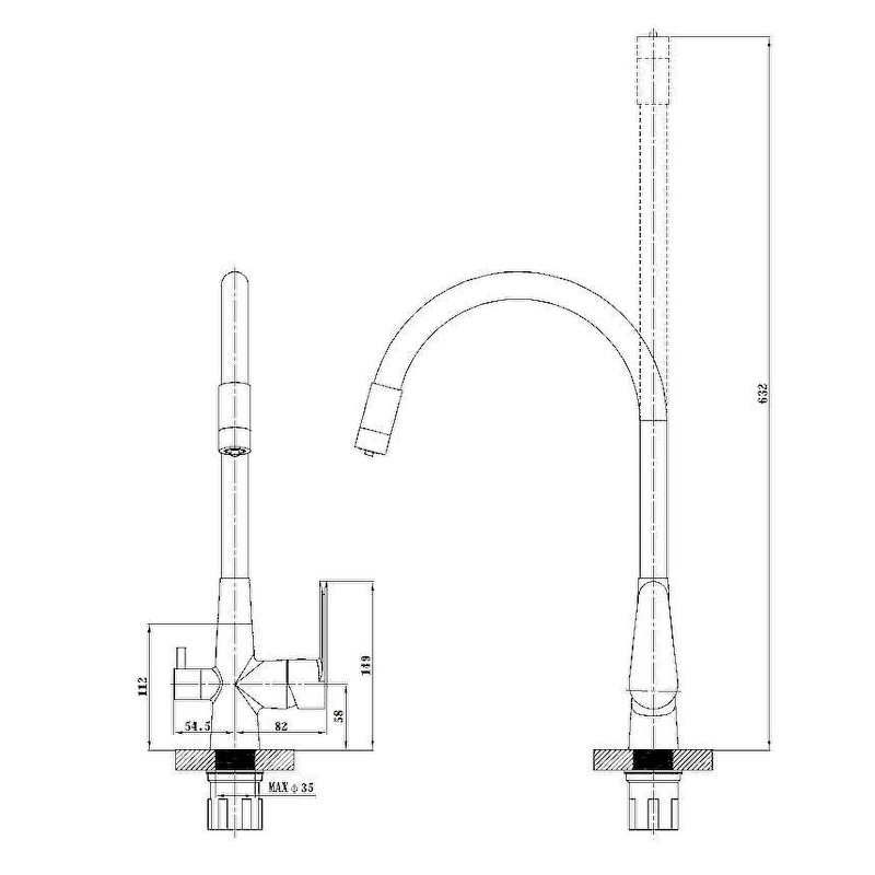 Длинный излив 52 см обеспечивает максимальное удобство.