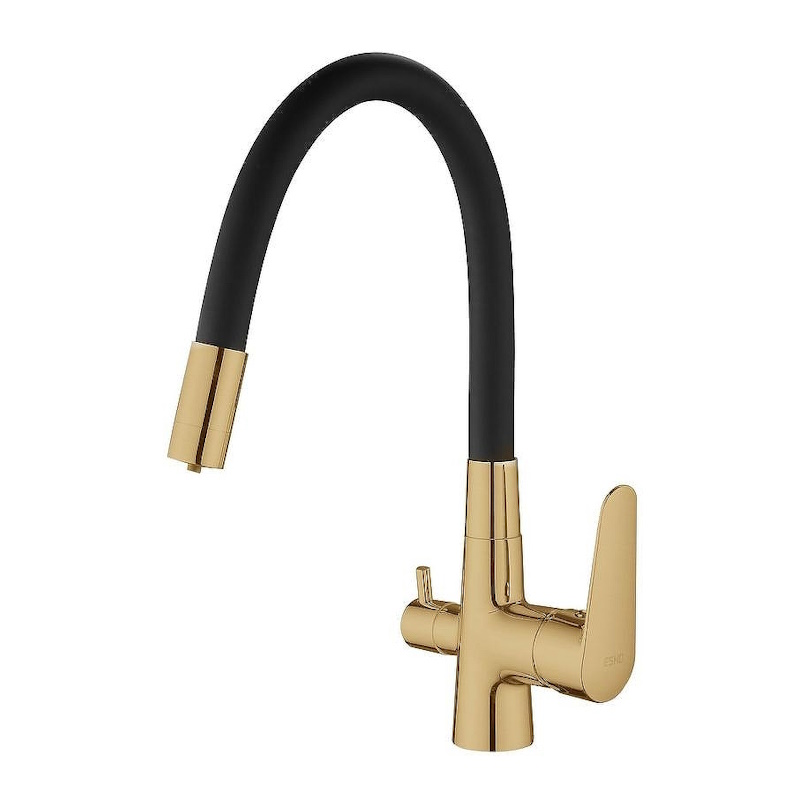 Смеситель для кухни с гибким изливом и подключением фильтра Esko Coral CL03GB, золото/черный