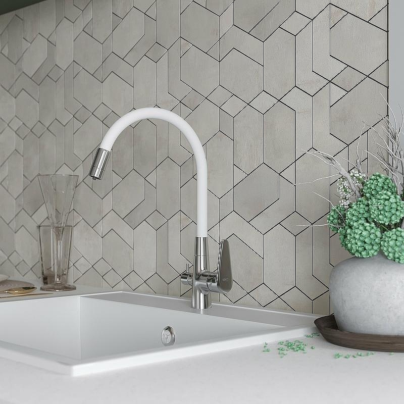 Смеситель для кухни Esko Coral CL 03 W: Многофункциональный белый смеситель с гибким изливом и подключением к фильтру.