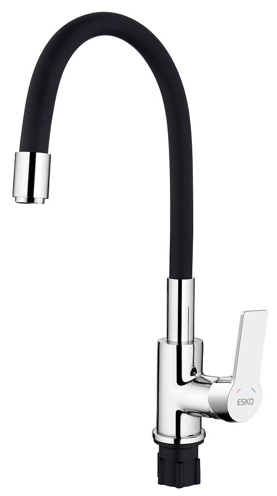 Смеситель для кухни Esko Coral CL 519 B: Стильный смеситель с черным гибким R-изливом длиной 54 см.