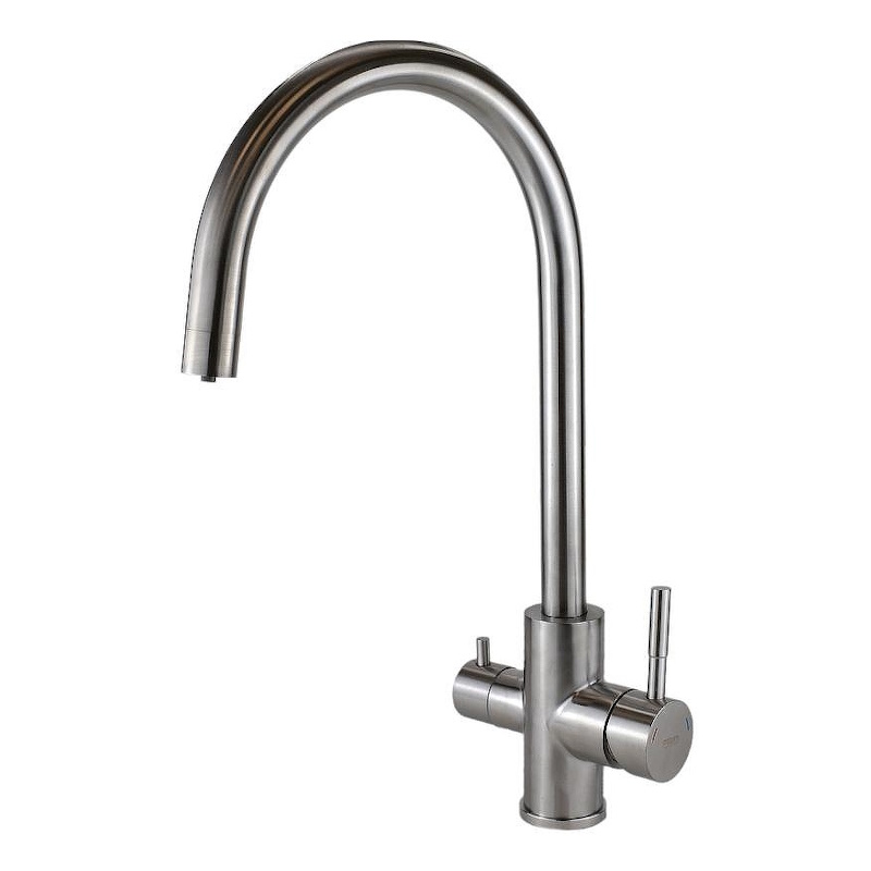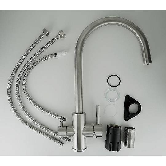 Смеситель для кухни Esko K22: Практичный смеситель из нержавеющей стали с R-изливом и функцией подключения к фильтру.