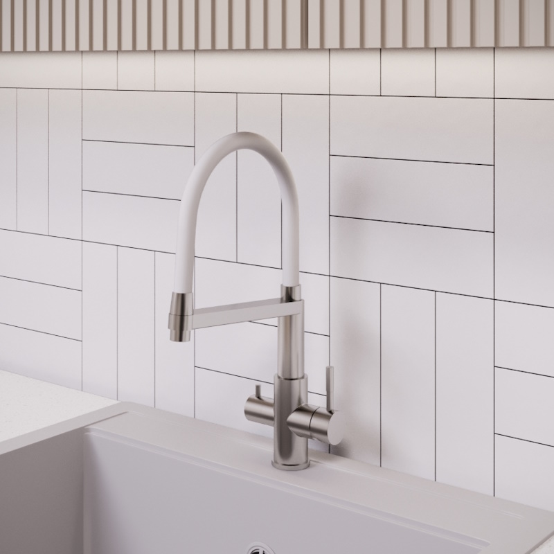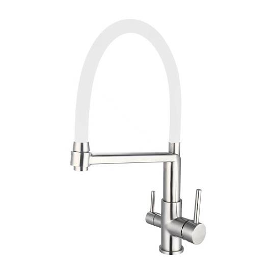 Смеситель для кухни с гибким изливом и подключением фильтра Esko Kitchen K26 W, сатин/белый купить по цене 13 500 руб.
