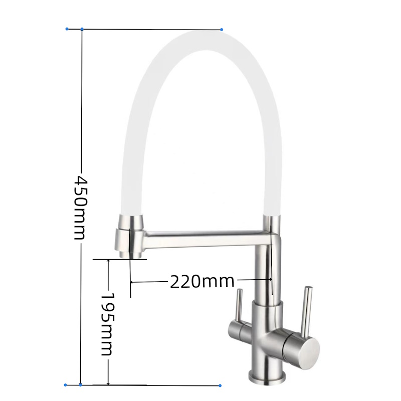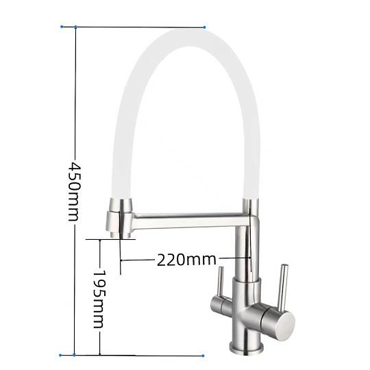 Смеситель для кухни Esko K26 W: Инновационный смеситель для кухни с гибким изливом из нержавеющей стали и функцией подключения к фильтру.