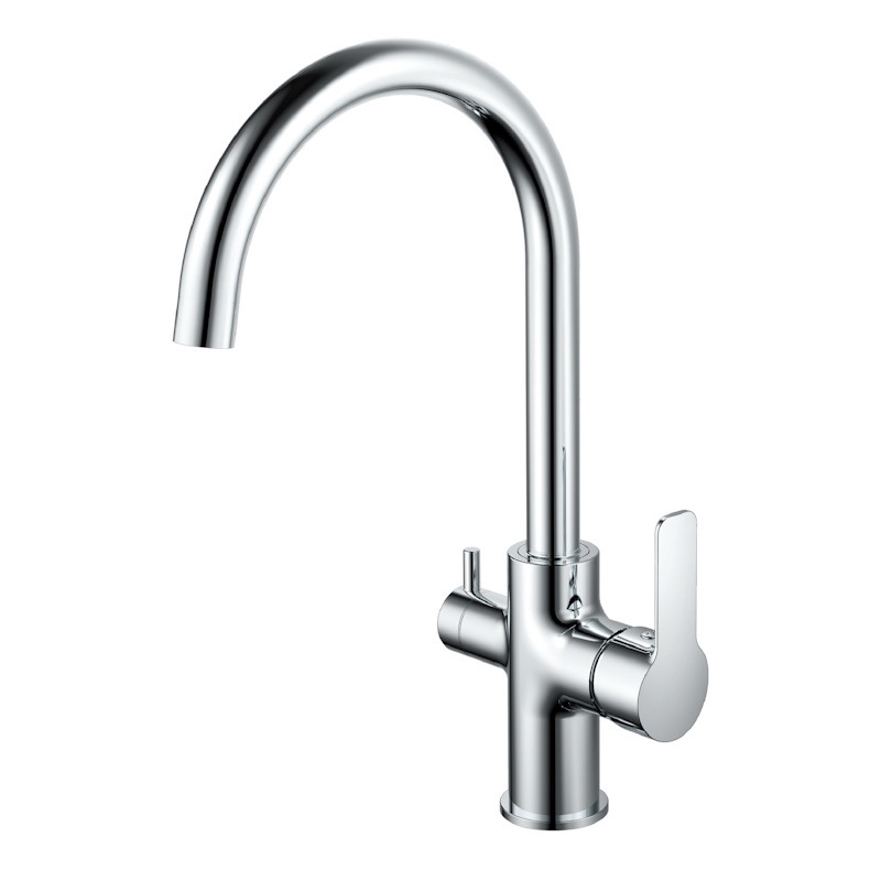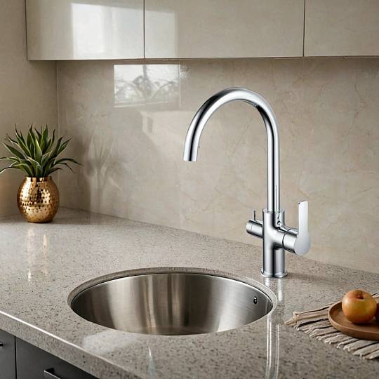 Смеситель для кухни Esko Kitchen K27: Практичный хромированный смеситель с R-изливом и функцией подключения к фильтру.