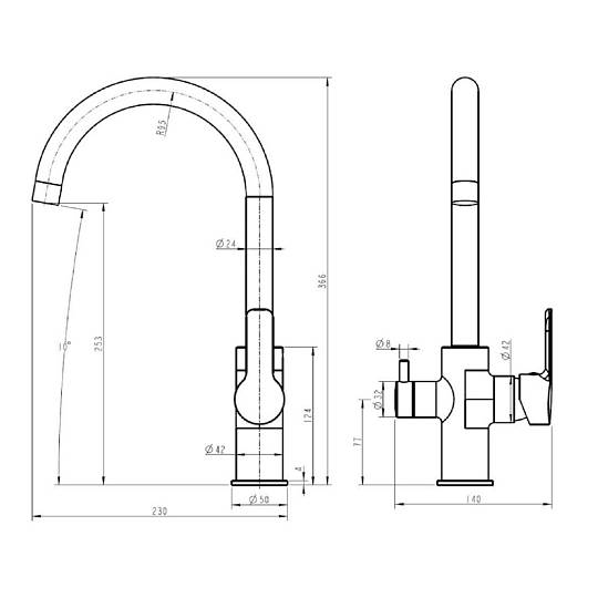 Дополнительный канал для питьевой воды облегчает процесс фильтрации и подачи чистой воды. Теперь у вас всегда будет доступ к чистой и свежей воде прямо из вашей мойки. Отдельный рычаг для подачи чистой воды от фильтра: подключается через отдельный шланг к системе фильтрации водопроводной воды, например марки Гейзер, Барьер и другие. Фильтр приобретается отдельно.