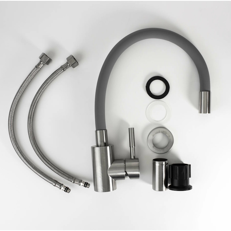Смеситель для кухни Esko Snake K44 G: Смеситель "Snake" с гибким серым изливом 48 см из нержавеющей стали.