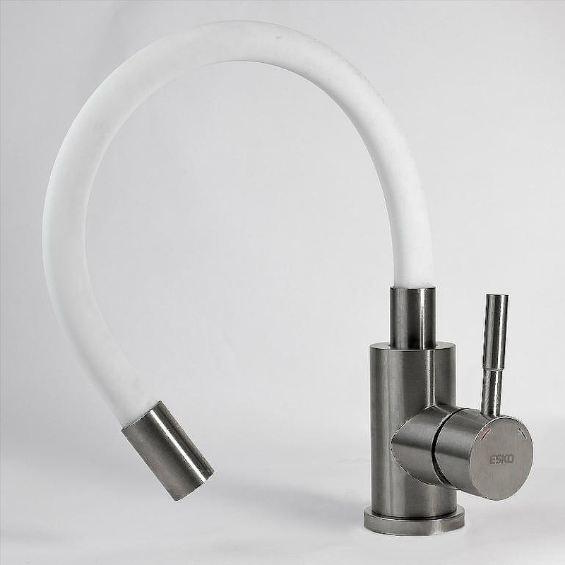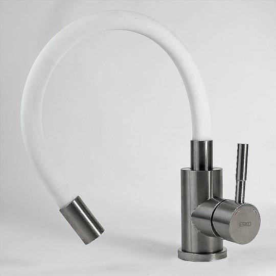 Смеситель для кухни с гибким изливом Esko Snake K44 W, сатин/белый купить по цене 6 250 руб.