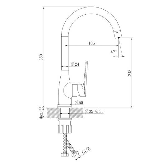 Смеситель для кухни Esko "Lagos Black", Г-излив, арт. LG06B: Стильный и прочный.