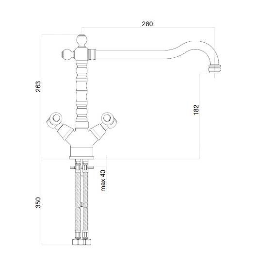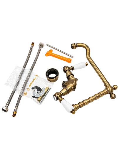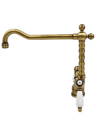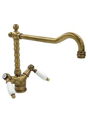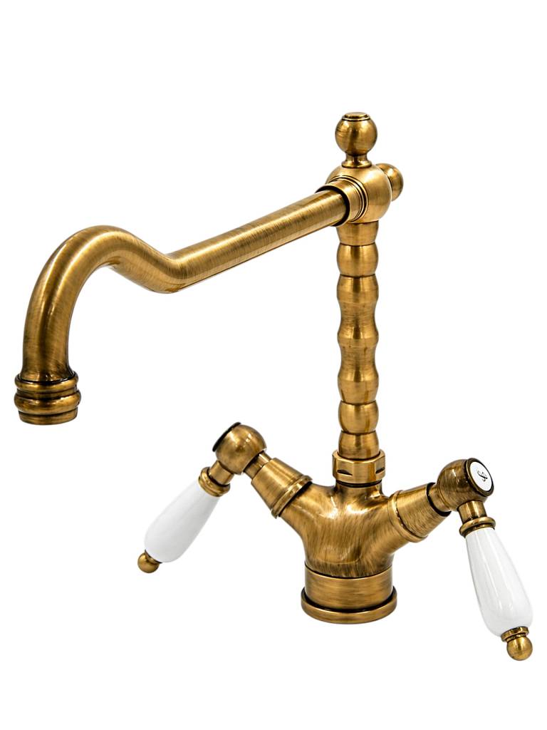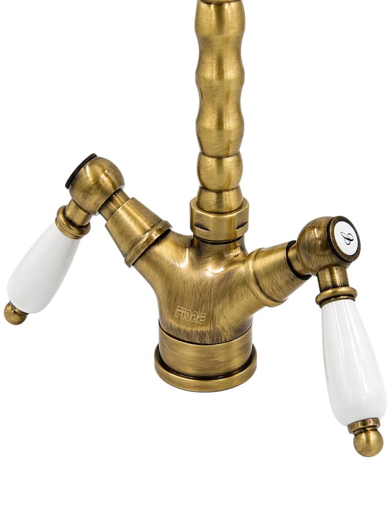 Смеситель для кухни Fiore COLONIALE 02ZZ0644, бронза. Этот кухонный смеситель в изысканном ретро-стиле с благородным бронзовым покрытием станет настоящим украшением вашей кухни. Он сочетает в себе утончённый итальянский дизайн, функциональность и долговечность. Длинный поворотный излив обеспечивает максимальный комфорт при мытье посуды и наполнении высоких ёмкостей, а вентильное управление  добавляет особый шарм и простоту в использовании. Бронзовое покрытие — устойчиво к царапинам, потускнению и воздействию влаги.