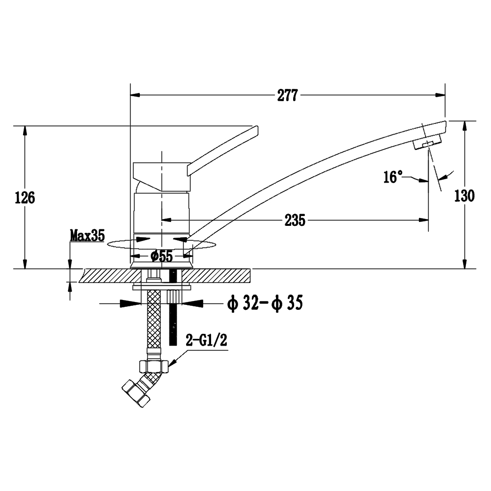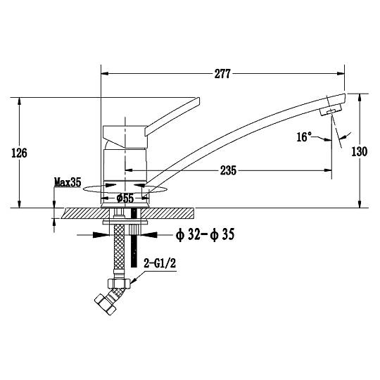 Смеситель для кухни GranFest 1724, серый металлик. Материал: латунь. Управление: рычажное. Подключение фильтра для воды: нет. Гибкая подводка. Отверстия для монтажа: 1.