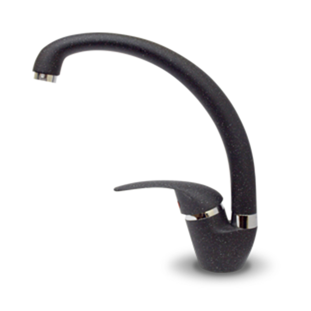 Смеситель для кухни GranFest 3323, черный. Материал: латунь. Управление: рычажное. Подключение фильтра для воды: нет. Гибкая подводка. Отверстия для монтажа: 1.