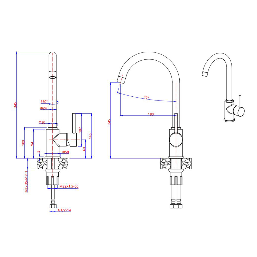 Смеситель для кухни GranFest 3650, серый. Материал: нержавеющая сталь. Управление: рычажное. Подключение фильтра для воды: нет. Гибкая подводка. Отверстия для монтажа: 1.