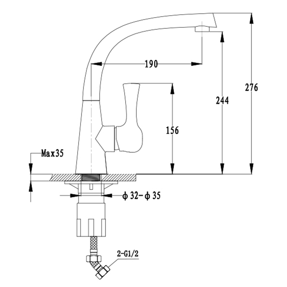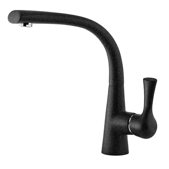 Смеситель для кухни GranFest 3723, черный. Материал: латунь. Управление: рычажное. Подключение фильтра для воды: нет. Гибкая подводка. Отверстия для монтажа: 1.