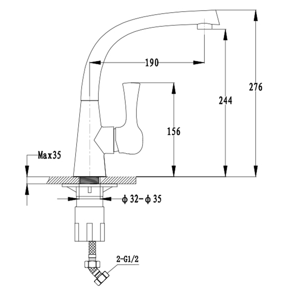Смеситель для кухни GranFest 3723, иней. Материал: латунь. Управление: рычажное. Подключение фильтра для воды: нет. Гибкая подводка. Отверстия для монтажа: 1.