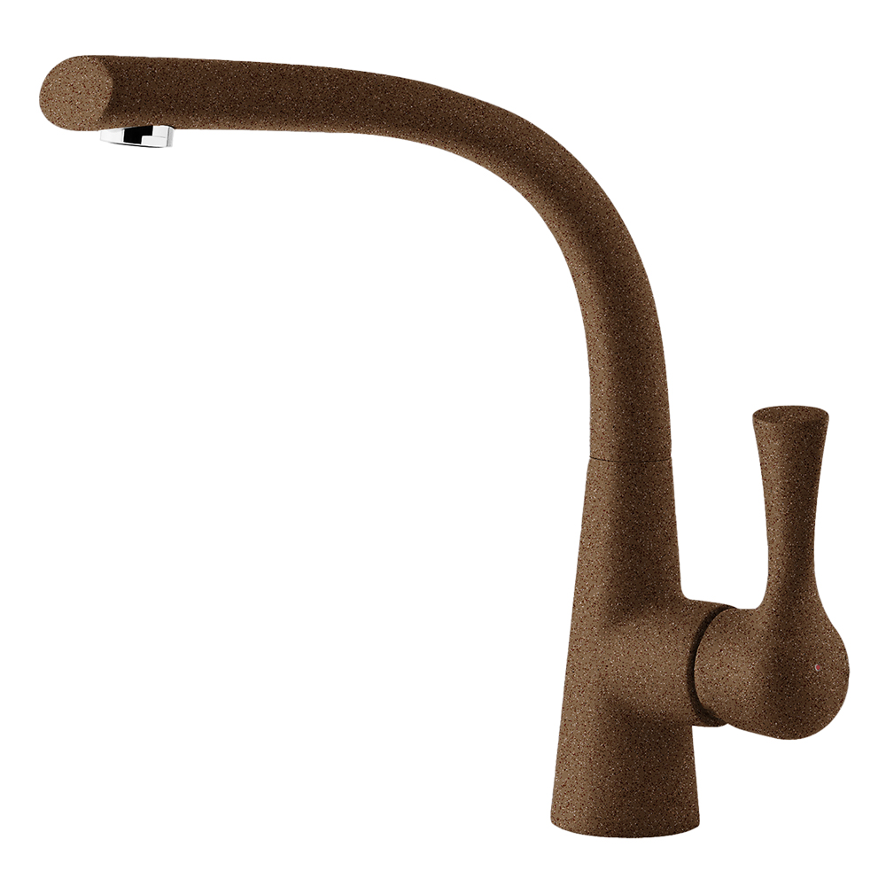 Смеситель для кухни GranFest 3723, тёмно-бежевый. Материал: латунь. Управление: рычажное. Подключение фильтра для воды: нет. Гибкая подводка. Отверстия для монтажа: 1.
