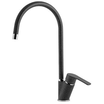 Смеситель для кухни GranFest 5023, антрацит. Материал: латунь. Управление: рычажное. Подключение фильтра для воды: нет. Гибкая подводка. Отверстия для монтажа: 1.