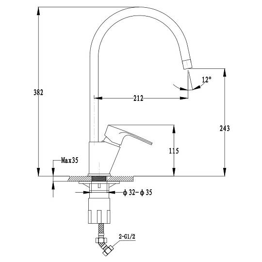 Высота излива, см