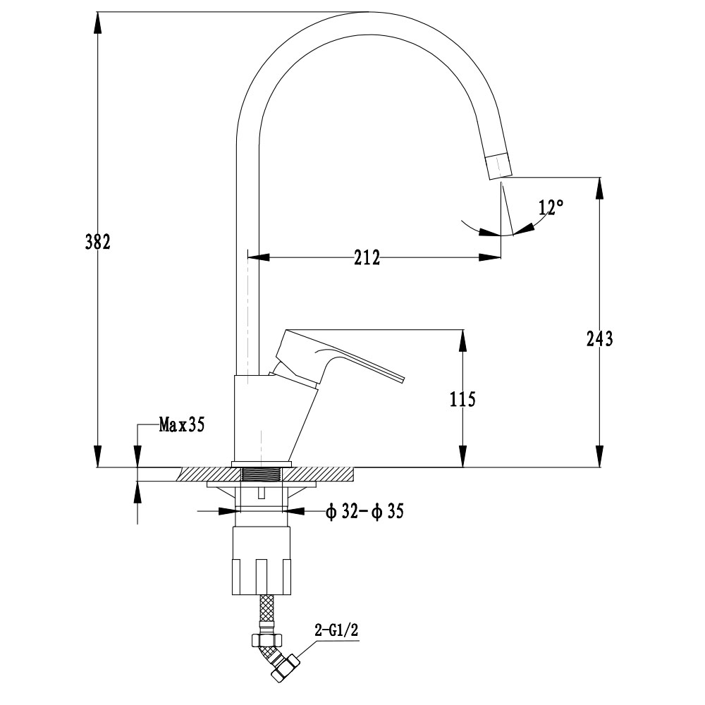 Смеситель для кухни GranFest 5023, бежевый. Материал: латунь. Управление: рычажное. Подключение фильтра для воды: нет. Гибкая подводка. Отверстия для монтажа: 1.