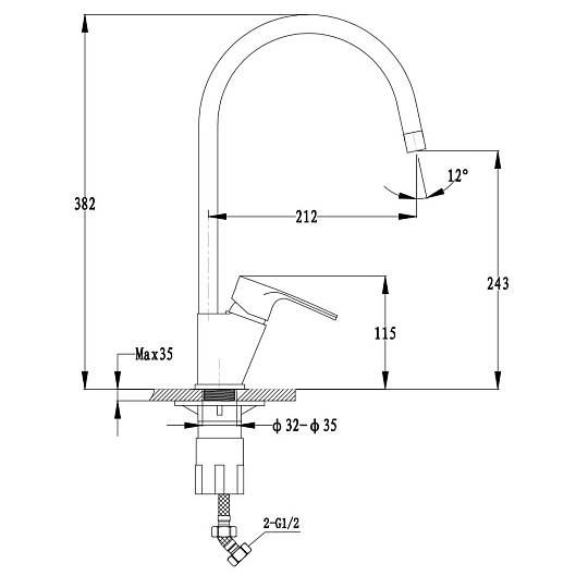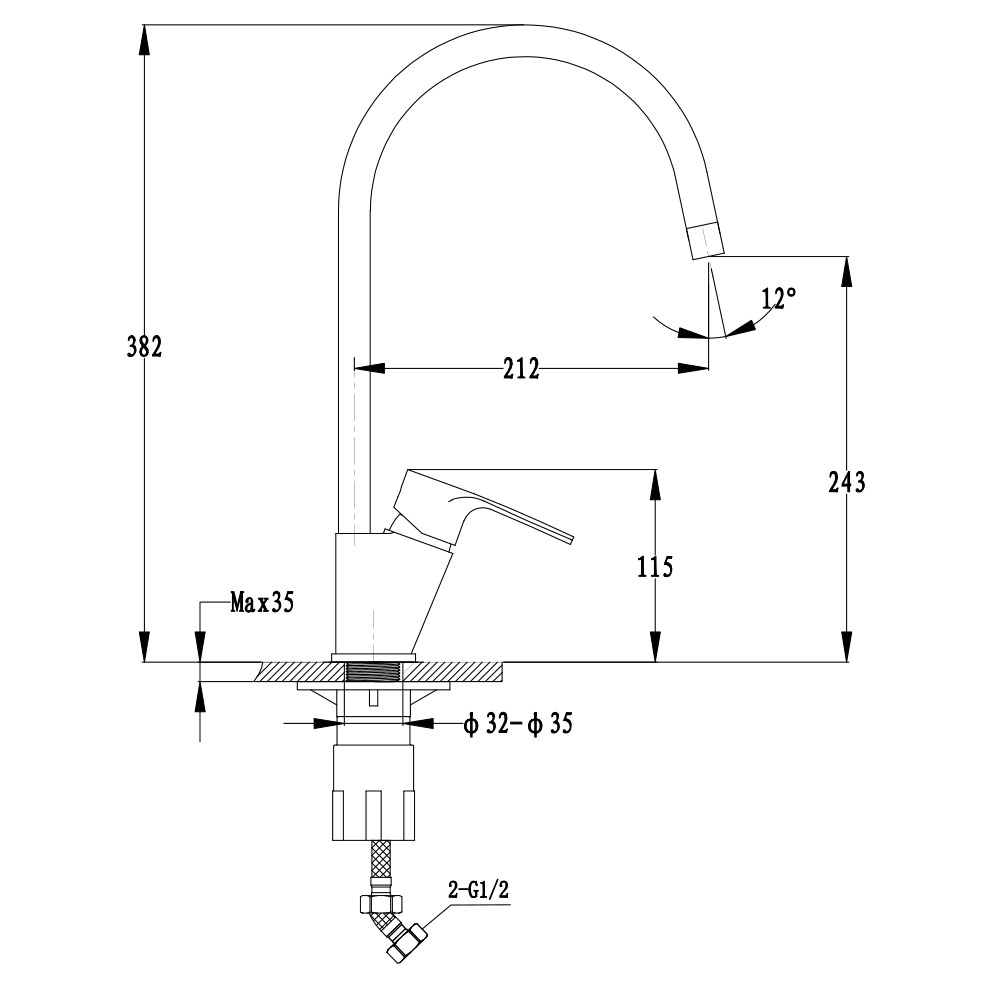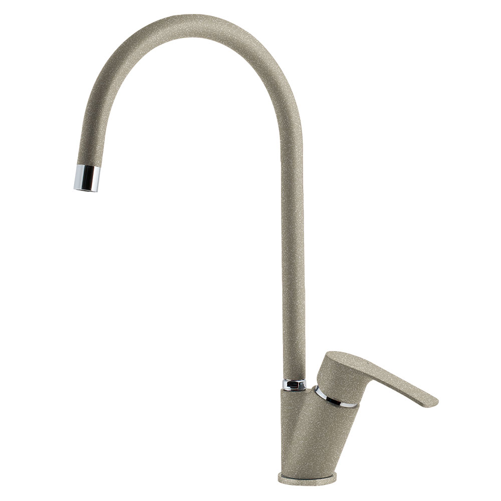 Смеситель для кухни GranFest 5023, топаз. Материал: латунь. Управление: рычажное. Подключение фильтра для воды: нет. Гибкая подводка. Отверстия для монтажа: 1.