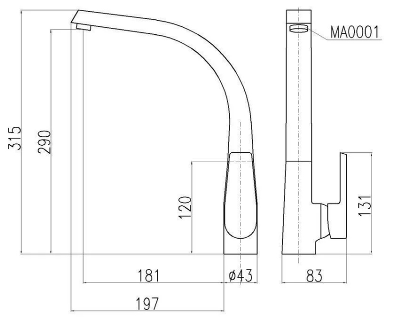 • Монолитный корпус смесителя изготовлен из качественной латуни с гладким покрытием цвета хром.