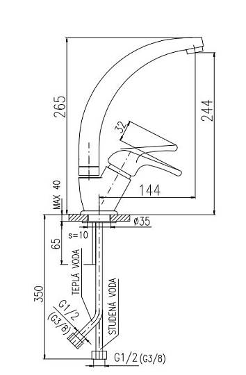Однорычажный смеситель Rav Slezak Sazava SA306.5/3 для раковины. Монтаж вертикальный на 1 отверстие. Металлическая рукоятка. Керамический катридж 35мм.