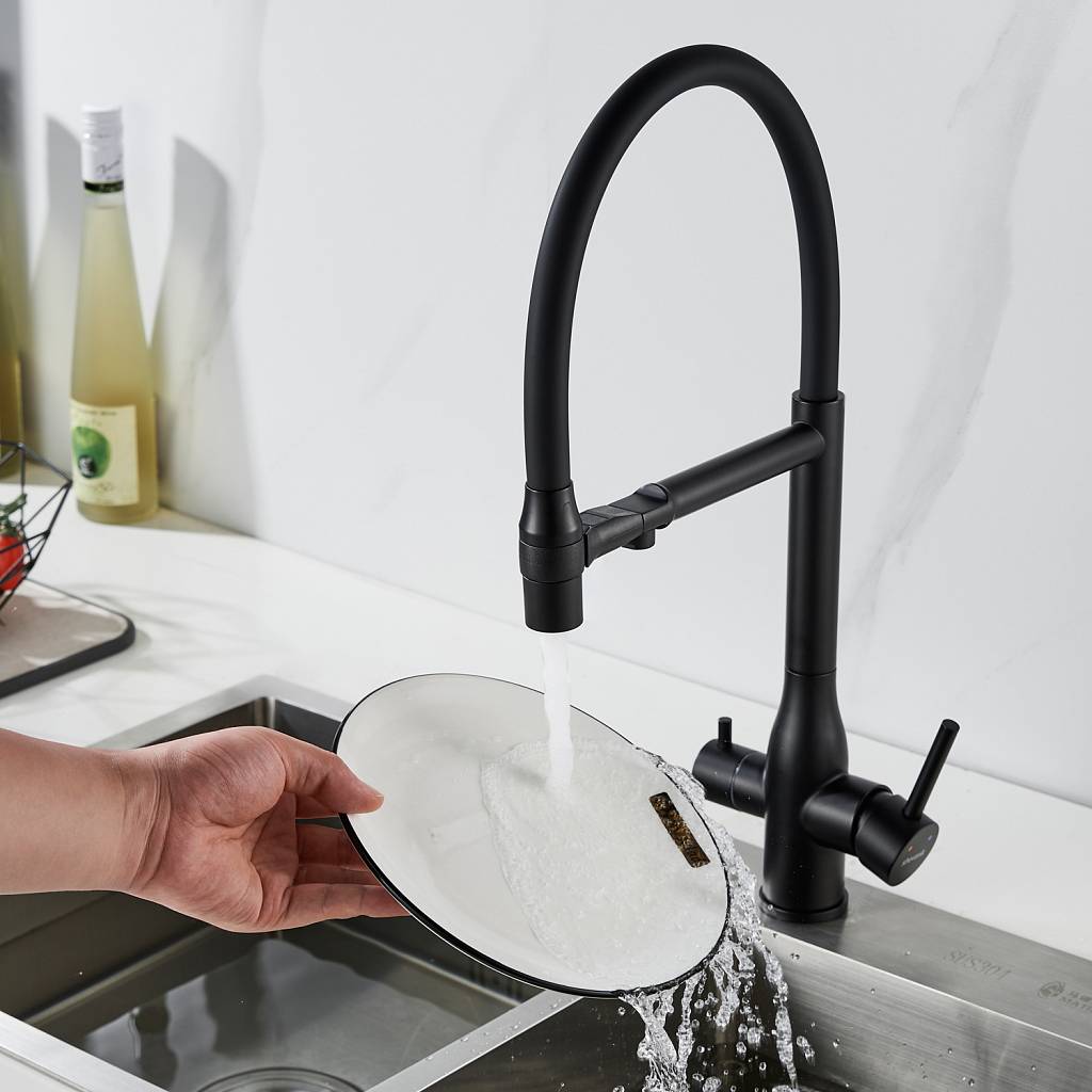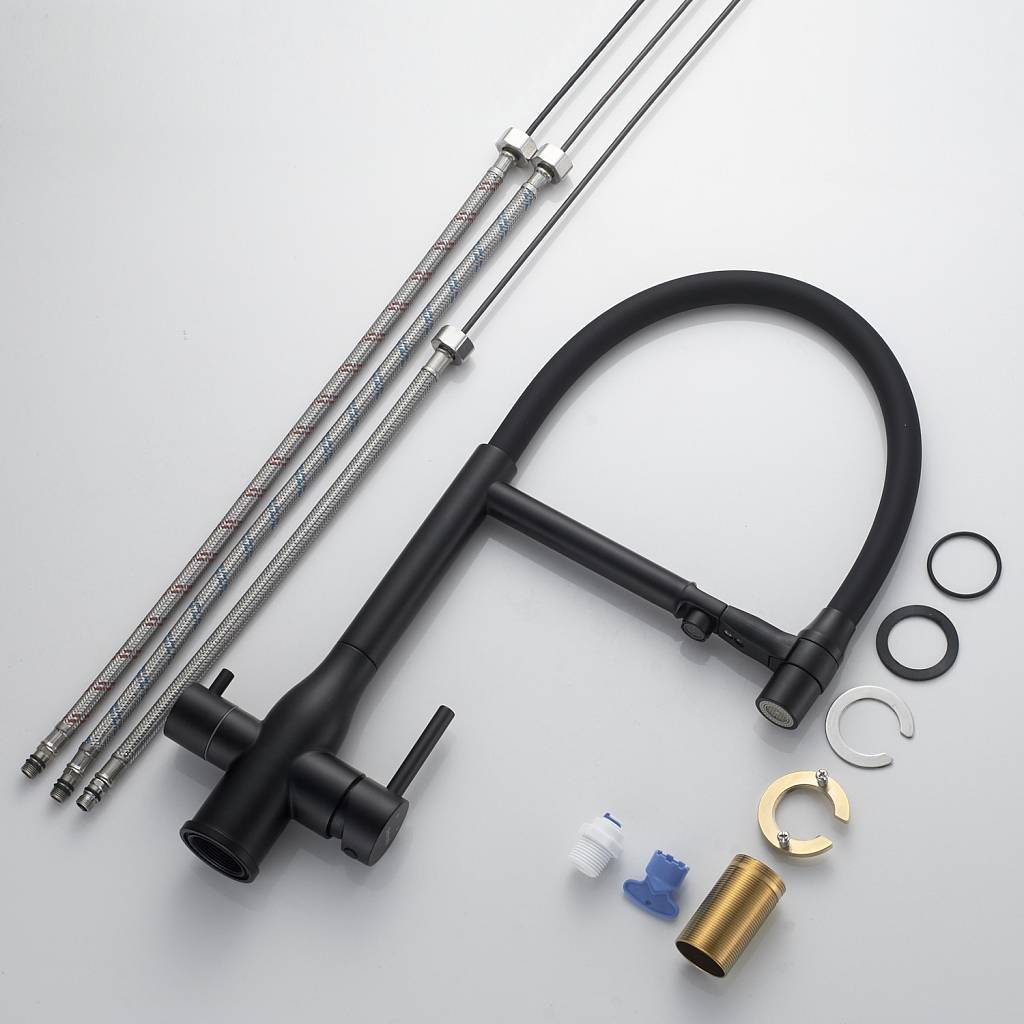 Смеситель для кухни с гибким изливом и подключением фильтра Shevanik S378H, черный